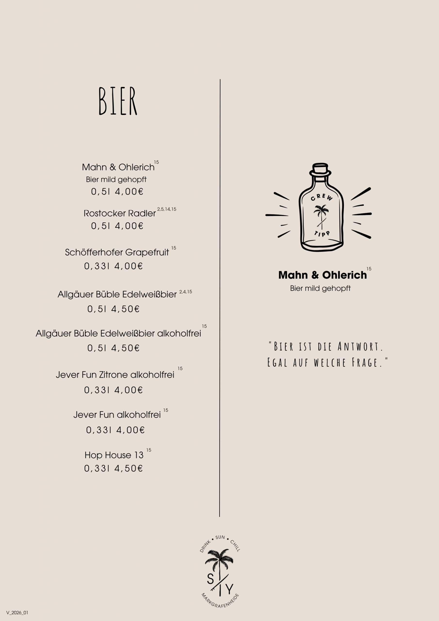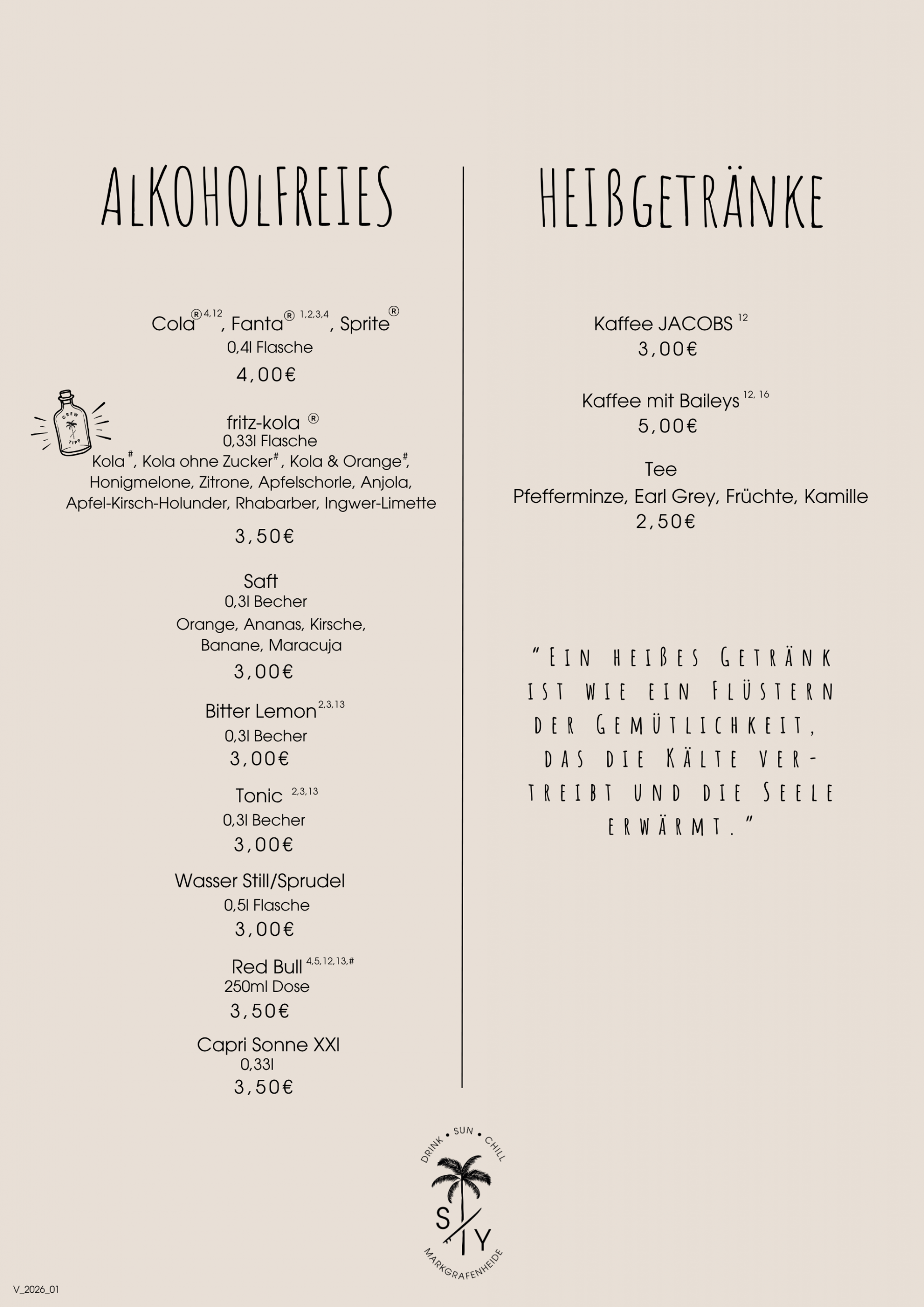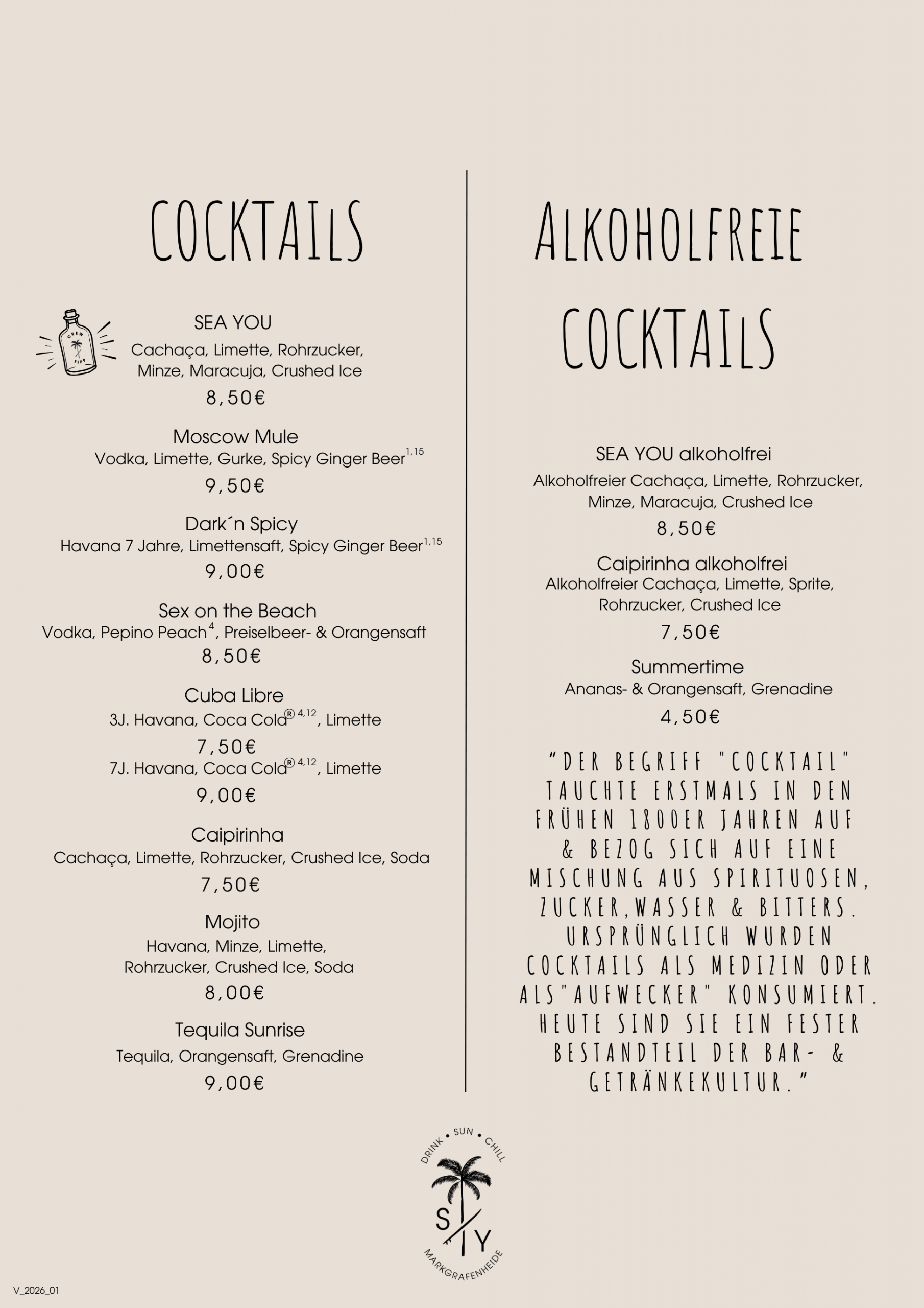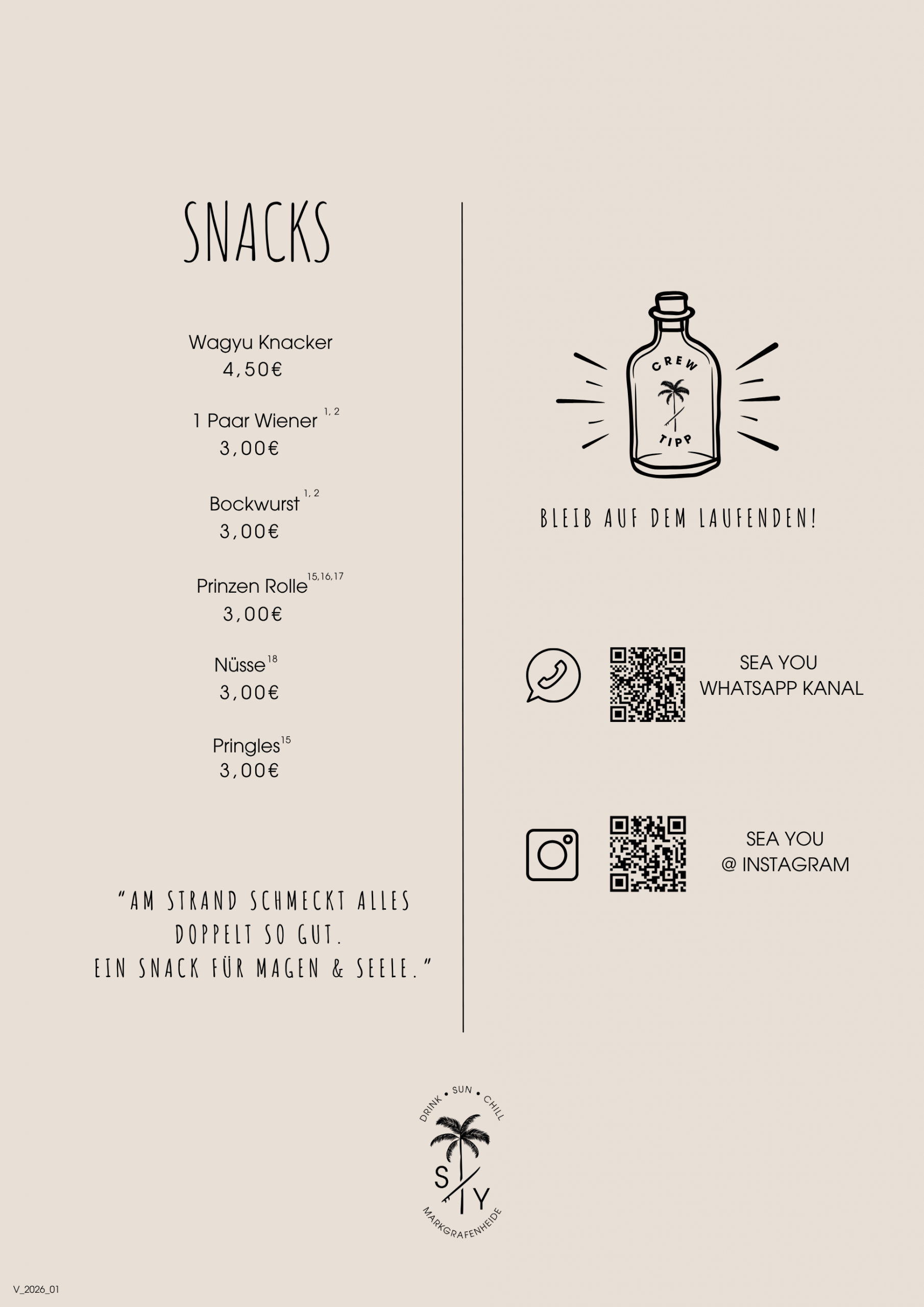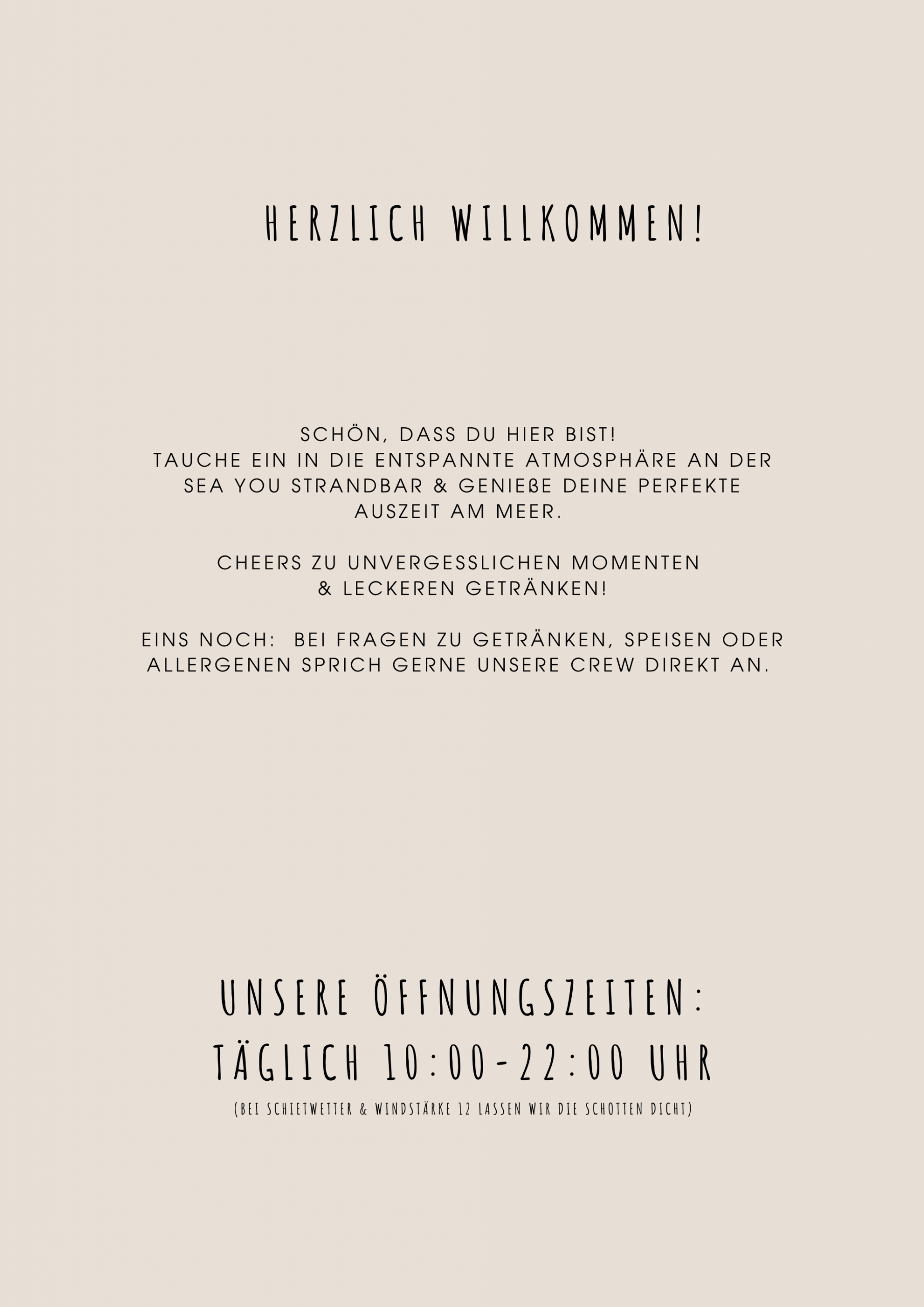OB LECKERE COCKTAILS, KÜHLES BIER, EIS ODER KLEINE SNACKS - DIE PERFEKTEN BEGLEITER FÜR EUREN ENTSPANNTEN TAG AM MEER.